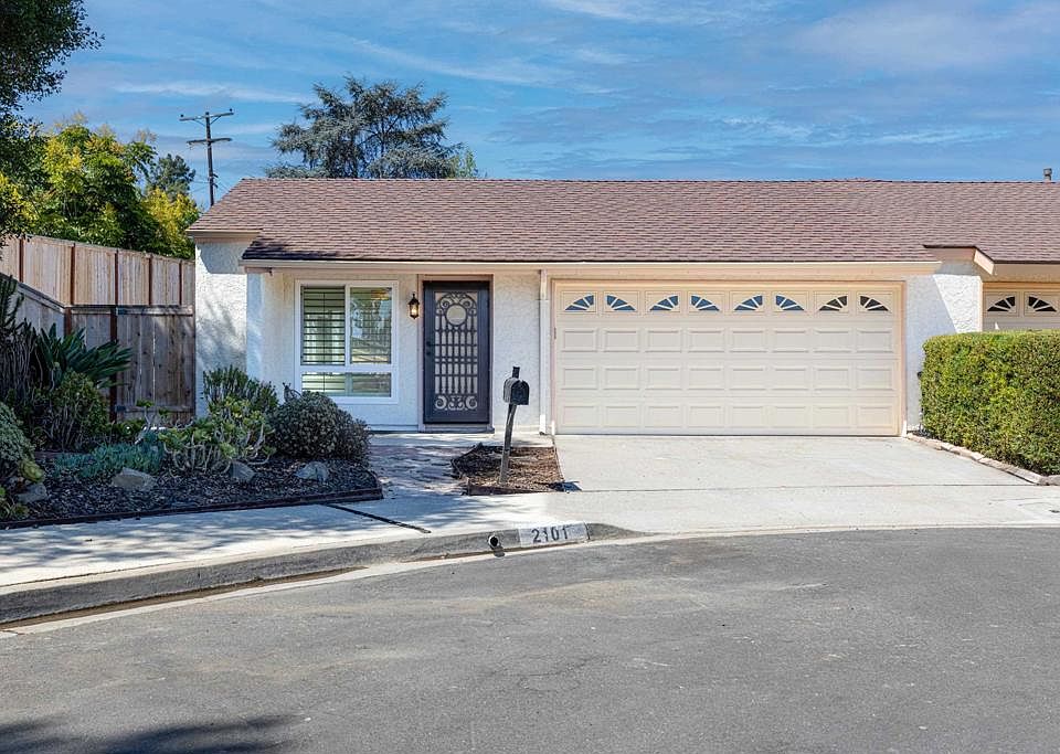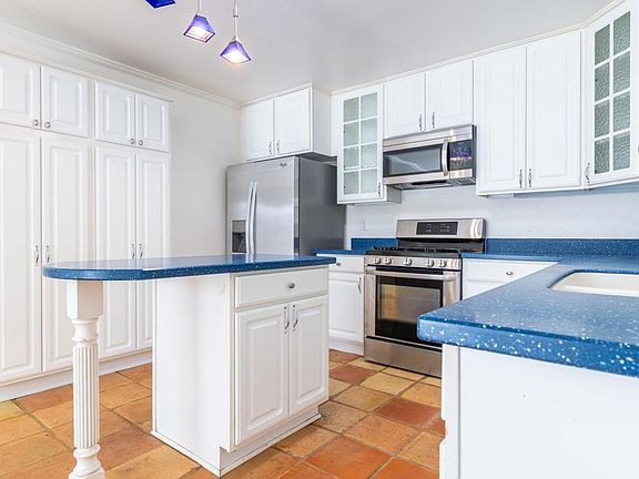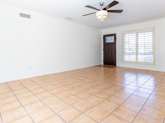 Light and bright single-level twin home located on a cul-de-sac. This open floor plan offers new paint throughout, new exterior stucco, dual pane windows, Saltillo tile and laminate flooring, plantation shutters, ceiling fans in each room, and new A/C unit. The kitchen features custom cabinetry, solid surface countertops, stainless steel appliances, and a large center island. Two full bathrooms, including a walk-in tiled shower in the primary suite with barn door entry. Additional highlights include crown moulding, solar, a spacious backyard and patio with aluminum wood-look cover, and a large grass area. The home also offers a 2-car attached garage. Community amenities include two pools and walking trails.