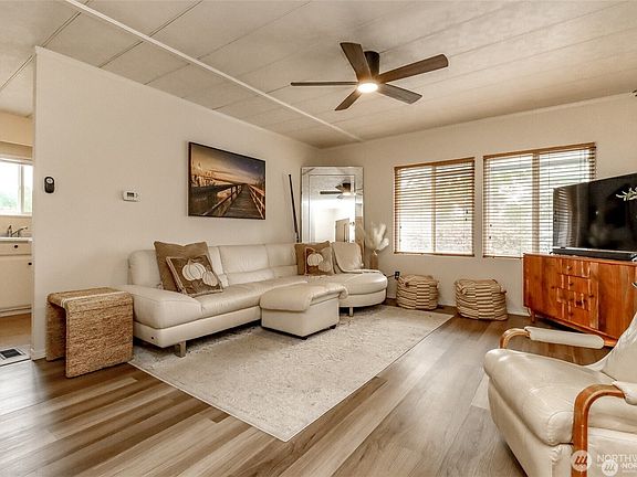 Welcome Home to Belmor Park 55+ Gated Community Offering a 9-Hole Golf Course, Indoor Pool, Sauna, Pool Tables, Club House w/lots of Social Activities, Gym and Exercise Room & Fully Fenced Dog Park. This is 2Bed, 2Bath home that sits in front of the 7th Hole, Features New Wood Flooring, New DryWall, Fresh Interior Paint throughout & has Double Pane Windows. Kitchen has lots of cabinet space, Laundry Room, & Mud Room. Walk-In Closet in Primary Bedroom, Newer Furnace, Newer Water Heater & All Appliances Stay! Some furnishings are negotiable as well. Large Walk-In Storage Shed in Carport, 3 Parking Spaces (2 covered). Conveniently located near Light Rail Station, Shopping Centers, Restaurants, I-5. This is a Must See! Bring ALL Offers!