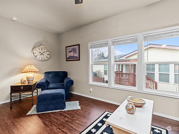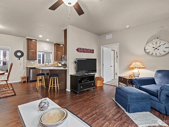 2020 build with a welcoming, spacious layout in the beautiful 55+ Belmor Park. Open concept home features waterproof LVP flooring with carpet in bedrooms and high ceilings throughout. The kitchen is designed for entertaining with quartz countertops, upgraded oak cabinetry, and a breakfast bar w/dining area. This community is like a country club in the heart of it all, featuring a challenging private 9-hole golf course, clubhouse with saltwater pool, spa/sauna/hot tub, and a dog park for your furry friend. Enjoy the mountain views from your conveniently located home, within walking distance of the clubhouse and golf course. Features covered parking, large storage shed, a nicely landscaped yard, personal garden space, and sprinkler system.