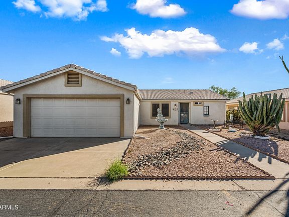 Welcome home in the great 55+ community of Meridian Manor! This inviting residence features brand-new carpet throughout and a newer AC unit, ensuring comfort and peace of mind year-round. Enjoy the open layout—perfect for entertaining or relaxing in style. The split bedroom floor plan provides privacy, while the large master suite offers a generous bathroom with ample storage space. The built-in shelving in the garage for organization and the large covered patio, ideal for enjoying Arizona's beautiful weather. Meridian Manor offers resort-style amenities including a clubhouse with a library, fitness center, six billiard tables, craft room, and a ballroom for events and activities. Stay active with pickleball and shuffleboard courts, or unwind at the heated pool and Jacuzzi.