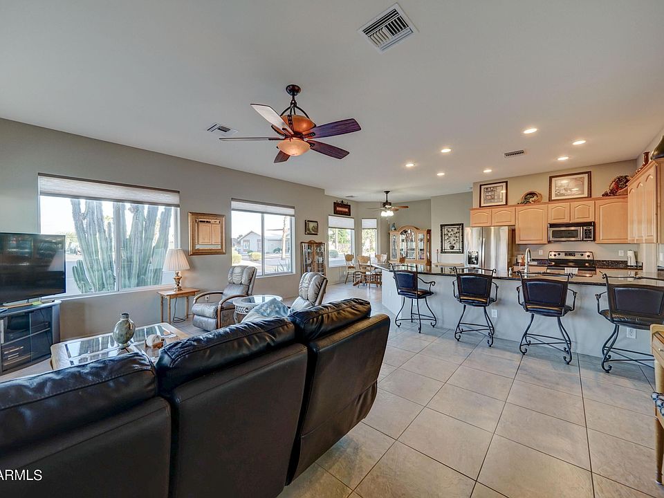 Be part of this Vibrant Lifestyle you desire and deserve! --A Fabulous active adult, gated community on the Apache Junction/Mesa border with all the amenities & activities imaginable! Relax on the huge front porch & enjoy the mountain views - just steps away from the amenities! The great room is spacious & is open to the full dining area with a bay window & a nook. The modern kitchen features SS appliances, plant shelf & a long granite counter - perfect for entertaining! The laundry area is big with a pantry & deep nook. The hallways are wide with large bedrooms! The 3rd bedroom has space for a closet & could change the window to a door to access the back yard. Many updates: roof- 3 yrs. ext. paint -1 yr., carpet - 5 yrs. Newer refrig, water softner & faucets. VISIT THE AMENITIES!