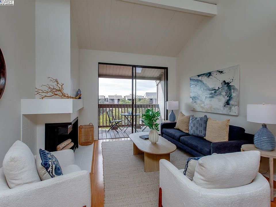 Located directly across the street from Alameda's beach and shoreline, this newly updated waterfront condo is part of The Willows HOA community and features 2 bedrooms, 1.5 bathrooms and a living room/dining room/kitchen great room. Features of this sunny 4th-floor home include a durable wood-style laminate floor on the main upper level, and new carpeting in the lower level bedrooms. Updates include new light fixtures, new quartz kitchen counters + a new stainless steel range + dishwasher, fresh interior paint + updated/refreshed bathrooms. Details include a dramatic vaulted great room ceiling, a fireplace + a balcony off the great room with partial water views. In-unit washer/dryer hookups. One covered parking space is assigned to the unit. Owners can take advantage of the HOA's many amenities such as an attractive clubhouse, a large pool + an in-ground spa, and a fitness center. The convenience of the home's close proximity to Trader Joe's and the South Shore Center's many attractions can't be overstated, while Washington Park and downtown Park St are just a few minutes away. With the sights and sounds of the SF Bay at your doorstep, this home truly feels like resort-style living at its best!