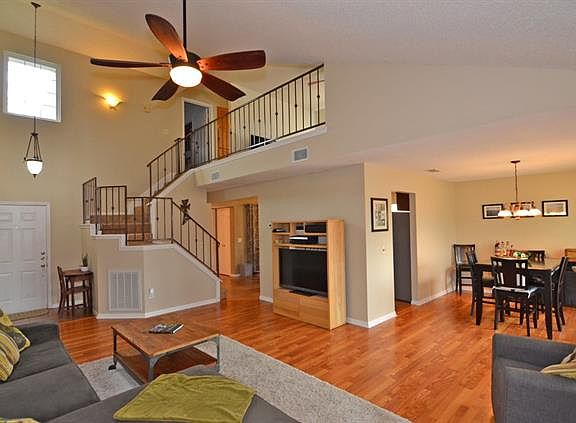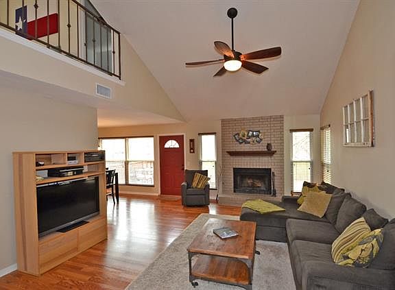 Owner upgrades include 2014 hardiplank type siding added on 3 sides (2014), windows replaced on three side of home(approx. $10,000/2014), Kitchen upgrades: refinished cabinets, under mount sink, quartz countertops, back splash, pendant lights, microwave(2014), hvac blower/fan replaced January 2017.Home backs to greenbelt/walk-trail! Open living with high ceilings! Spacious master down w/vaulted ceiling, spacious master bath! 2nd living up w/2 more spacious bedrooms and full bath!