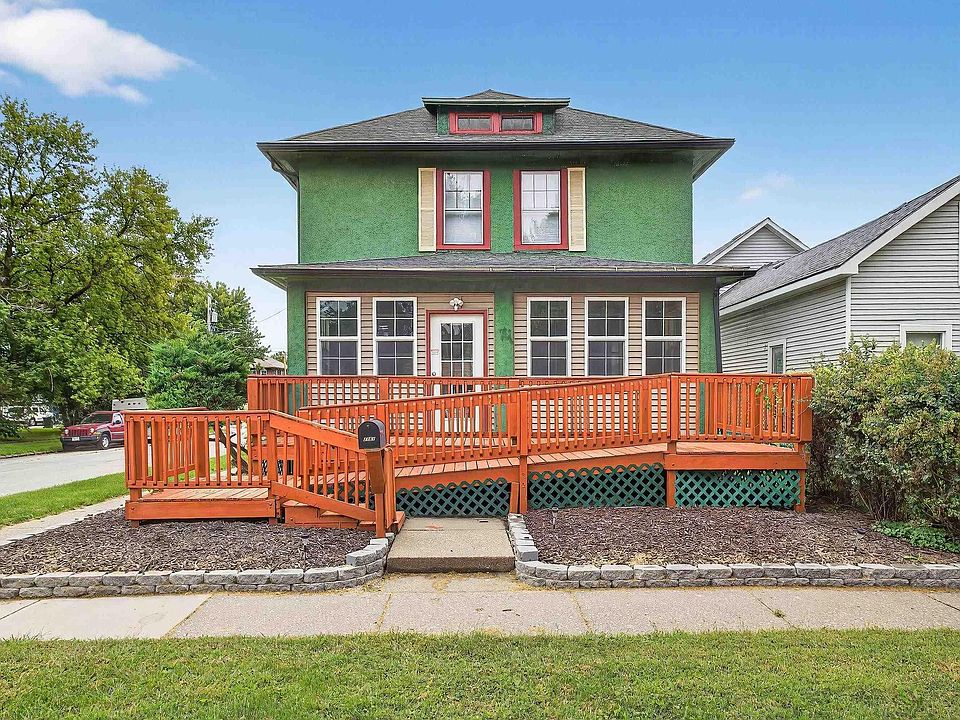 Move-in-Ready & waiting for you to make it your home! Step into this classic 2 story, 5 bedroom, 2 bath Davenport home to find the beautiful original wood trim, hardwood floors, french doors, solid wood doors & wood staircase that have been preserved through time. The spacious great room with cozy fireplace gives you room for both dining & living space to let you gather & entertain many. The convenience of a main floor bedroom would also make a wonderful formal dining room or home office. The eat-in Kitchen features LVP flooring, updated cabinets, pantry & 1/2 bath. Relax & enjoy the upcoming Fall weather from the enclosed 3 season room/porch, multi level front deck or on the covered brick patio in the privacy fenced back yard. Upstairs you will find 4 more bedrooms with the same beautiful original wood trim, doors & floors, a full bath with claw foot tub/shower combo PLUS a walk-up attic to give you more finishable space. Plenty of room to expand or for storage in the walk-out basement. The enclosed porch/mud room off of the kitchen gives a great drop zone for shoes & stuff. Updates include but not limited to the Roof, some Windows, Deck, Plumbing, Water Htr, Electrical & more. Book your private showing appointment today!