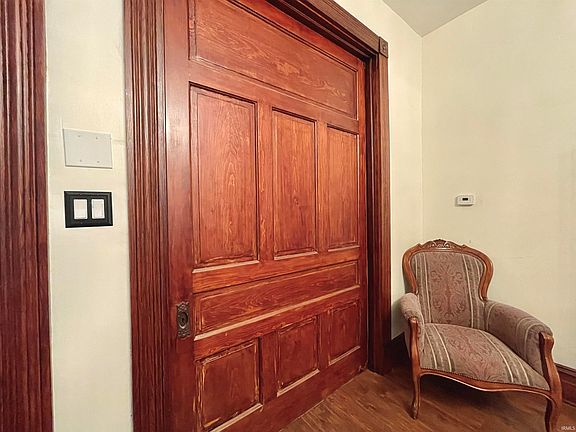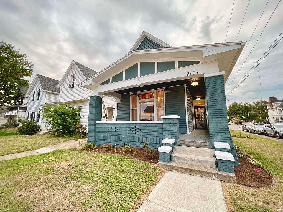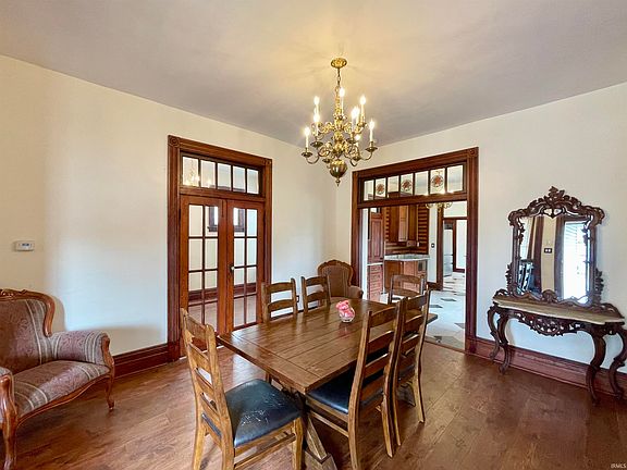 This late Victorian home blends historic charm with modern daily life, highlighted by its inviting craftsman-era corner porch on a prominent corner lot close to all that West Franklin Street has to offer. Step inside through the covered porch, into a formal dining room, with an original 5' single pocket door separating a spacious front parlor featuring a corner fireplace and stunning stained-glass transom window. French doors open to a flexible room that easily serves as a home office, guest bedroom, or fourth bedroom. Just beyond the dining room, the thoughtful renovation creates a butler's pantry space with a cozy bay-window storage seat that's worthy of congregation, entertaining, or showcasing your bourbon collection to only yourself while you read your latest book acquisition in beautiful solace. Abundant new cabinetry blends with original woodwork, with a beautifully tiled full bath and guest powder room behind the wall. The kitchen is a showpiece, with quartz counters, stainless appliances, contemporary hood, large eat-in island, custom wood backsplash, and original built-ins. Upstairs, you'll find three bedrooms, plus a versatile landing with laundry and sitting area ideal for homework, gaming, home office, or that old fashioned television. Located just one block from Gerst Haus and the Westside Library Park, and right in the heart of the Fall Festival, you'll love the mix of history, style, and Westside neighborhood energy.