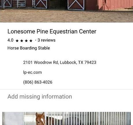Located on a horse barn that is open all day each day for horse stalls, horse riding lessons, barrel race tournaments, and much more.