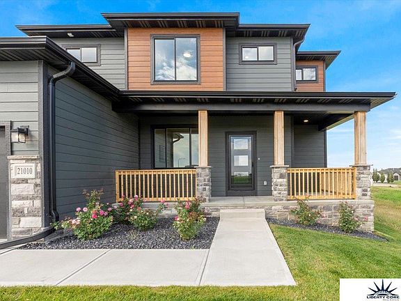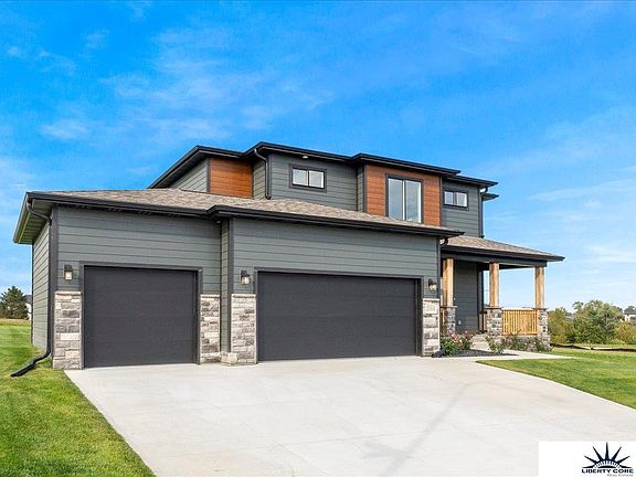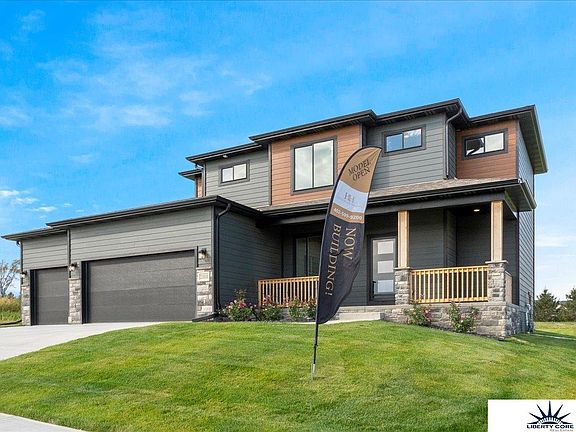 Model Home Not for Sale. The Bridgeport by Hallmark Homes Element Series in Elkhorn's Iron Bluff subdivision. A Modern Elevation and stunning black and cedar accents showcase the exterior of this home. Every Hallmark Home includes Quartz Countertops, GE Stainless Steel appliances, Moen plumbing fixtures, Luxury Vinyl Plank flooring, PureColor Carpet, 5-1/2" Base Trim, 2x6 Framed Exterior Walls, Stone on exterior and Sod w/ Sprinkler System! Tons of options to choose from! 1 Year New Home Warranty included.