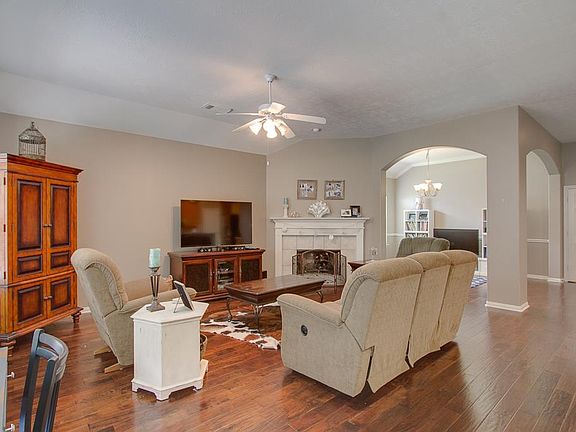 House packs a punch! Curb appeal galore w/ sweet landscaping. Gorgeous engineered wood floors run f/ entry into halls & living spaces. Loads of stylish paints, wood detail, & architectural interest. Ideal for entertaining & quality time w/ large kitchen & breakfast bar opening to living space, as well as mother-in-law plan w/ master separate f/ additional beds. Master suite is large and grande. Backyard covered stone patio with fans and raised dining area make ideal outdoor living space! Hurry!