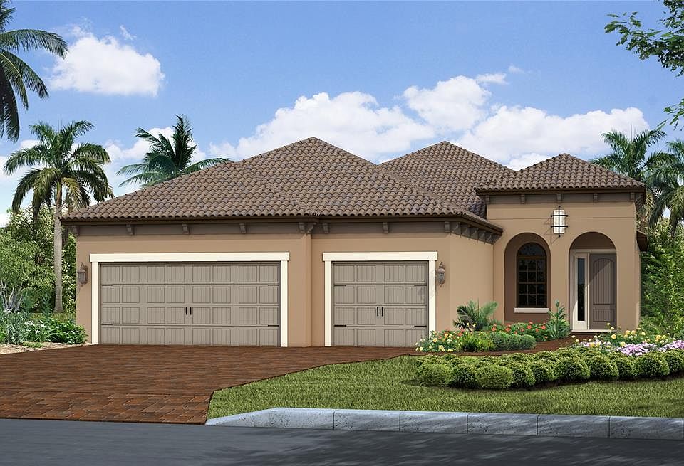 Under Construction. The feeling in Grand Palm is contentment. An amenity rich, natural gas community, located minutes to highway & beaches. Included lawn maintenance gives you time to enjoy the 3 pools, pickle ball games, nature walks, planned activities & more. This Bright Meadow home has been professionally designed for those ready to enjoy the FL lifestyle. A white gourmet kitchen, butler pantry with wine refrigerator, and large quartz island are perfect for gatherings. Unique touches include 8' interior doors, barn doors to the den & en-suite for guests that will want to stay. The covered lanai with pavers is plumbed for an outdoor kitchen with room to add your own a pool and included pool pre-wire for a spa. Feel secure with impact windows and standard smart home features. Call today for an appointment.