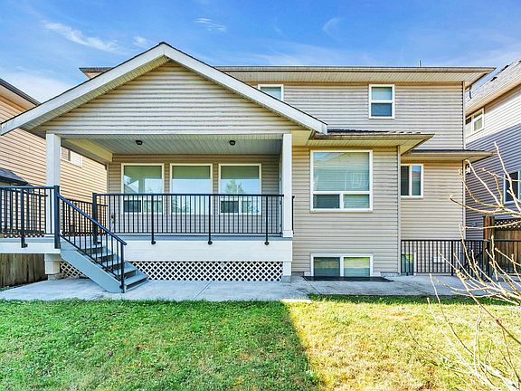 Luxurious home in Yorkson South! Featuring a gourmet kitchen with granite counters, large island with built-in drawers, custom maple cabinets, S/S appliances & gas stove. Main floor offers a spacious office/living space with wainscoting, plus a bright family room with gas fireplace, custom built-ins & engineered hardwood floors. Upstairs includes a primary suite with walk-in closet & organizers, ensuite with jacuzzi tub, granite counters, maple cabinets, separate showers & mountain views. Radiant heat, designer lighting & crown mouldings throughout the top two floors. Basement includes media room & 2-bed legal suite with new laminate flooring. Close to Lynn Fripps Elementary, parks & shopping.