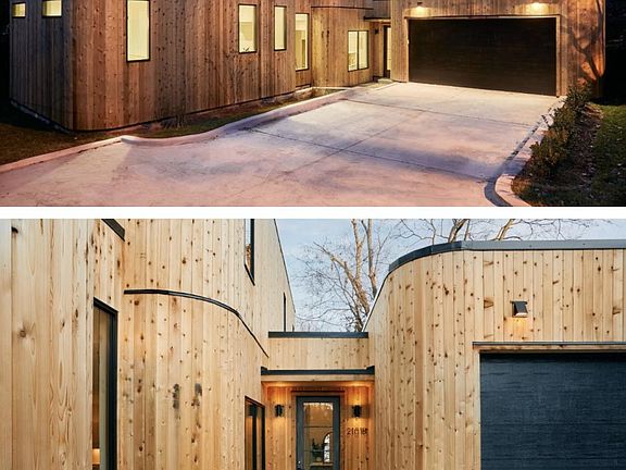ONE OF A KIND modern construction designed by architect Ryan Thewes and built by Black Chandelier Properties. Rounded corners on these 3 connected "pods" are like nothing on the market. One pod is the 2 car garage, another pod is the almost 600ft2 primary suite, and these 2 pods are connected by breezeways to the third and largest pod which features the main living/kitchen/dining area a second floor that has 2 beds/2baths and additional living space. High ceilings, lots of light, large rooms, very private setting. Large fenced backyard. Owner pays for water. Renter responsible for other utilities. No smoking in home