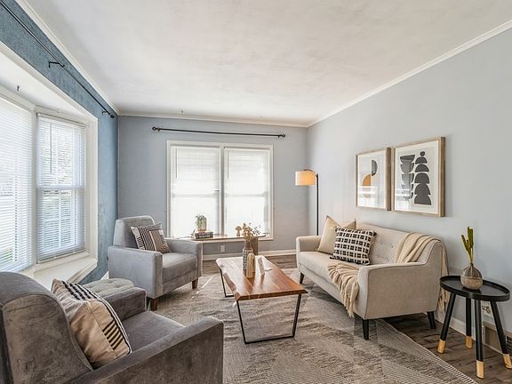 Experience the timeless allure of this 1.5 story home. Sunlight floods every room of this immaculate, move-in ready home. The main level provides a generous living room seamlessly connected to a centrally located dining area, a charming galley kitchen, two bedrooms, and a full bathroom. Upstairs, you'll find an inviting primary bedroom with its own half bathroom, blending the original charm with subtle updates. Checking the final box is a garage, making life even more convenient. Enjoy easy living with a short drive to all metro amenities via I-235, providing quick access to downtown or the suburbs. Notable updates: roof replaced (2020), sewer line replacement (2019), radon mitigation (2018), some newer exterior doors, newer garage siding.