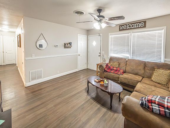 Outstanding & well-maintained three bedrooms, one bathroom home perfect for first time home buyers, students, retirees, or rental property. Low maintenance metal roof, updated flooring, paint, countertops in kitchen, fence & storage building/workshop. Spacious living area with coat closet. Vinyl flooring throughout. Extra hall closet for linens. New water heater 1-26-23.