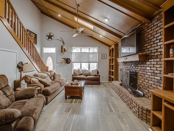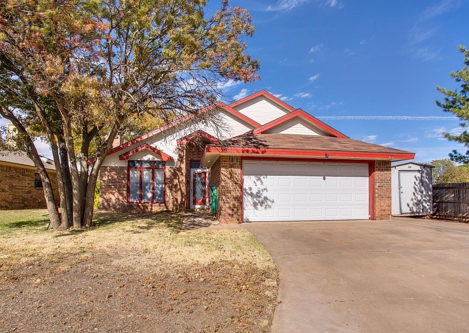 Awesome two story, three bedroom home located in South Lubbock! This home has a large living room with built-in bookshelves, a skylight and wood beams, and a wood-burning fireplace. The eat-in kitchen has updated appliances, tile flooring, stained cabinetry and formica counters. The main bedroom is located downstairs and has a stand alone shower, separate tub and a large closet. Upstairs are two additional bedrooms, a second full bathroom and a bonus room that is great for an office or workout room. Outdoors is a covered patio and shade from mature trees. Call us TODAY to see this one before it is gone!