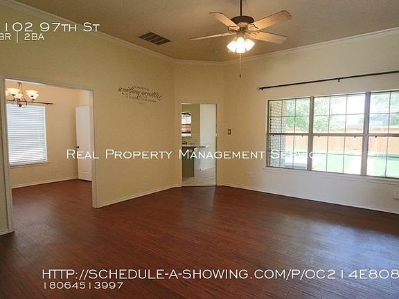Schedule your showing for this 4 bedroom, 2 bath home today! Clean and updated with laminate flooring and tile throughout. Great back yard for entertaining. Convenient to I-27 and 98th St. No cats, dogs under 25 lbs ok.