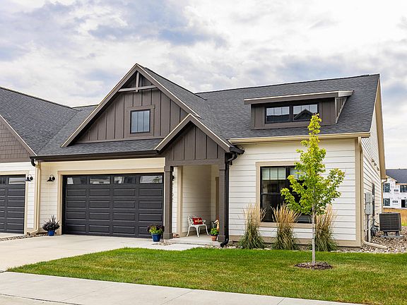 Step in to luxury! This zero entry townhome is beautiful inside and out. From the wall of southern facing windows, to the high ceilings and quality finishes, you'll love every space in this one-level home. The open floor plan provides an ease with the kitchen dining and living room flowing together. Feast your eyes on the large lighted pantry for all kinds of kitchen and household storage. The primary bedroom is roomy and you'll love the oversized walk-in tiled shower in the primary bath. There are two additional bedrooms and a full bath that can be used for guests or flex office space. From the attached garage you have no steps as you enter the mudroom and laundry space. The outdoor space is inviting with a covered patio area overlooking the green space of the Hayden's Ridge neighborhood. This area could be screened in or completed as a future sunroom. The southern windows let in light all year long but for privacy, the custom remote control blinds provide that feeling of security. There is built in storage shelving in the garage, plus as a special bonus, the garage is heated!!