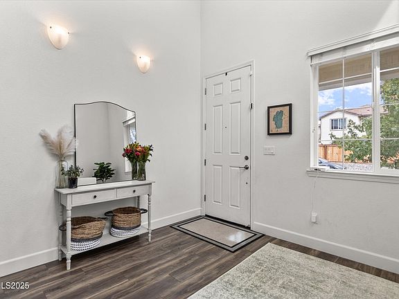 Welcome to this beautifully maintained two-story home in the Chantenay at Damonte Ranch Neighborhood- only three years old and tucked away in a peaceful cul-de-sac. Step inside to a soaring vaulted ceiling entryway that sets the tone for the light-filled and inviting interior. The first floor features durable LVP flooring that flows throughout most of the living spaces, while the kitchen showcases gleaming countertops that make both cooking and entertaining a joy. With plenty of thoughtfully designed storage, this home effortlessly balances style and function. Upstairs, you'll find a substantial primary suite that feels like a private retreat with lovely mountain views, complete with two walk-in closets and a spa-inspired bathroom featuring dual vanities. Three additional bedrooms are upstairs, with a private laundry room and extra storage. The backyard is perfect for those who want an enjoyable space with little maintenance, while also providing ample room for relaxation, play, or hosting gatherings. Perfectly situated within walking distance to neighborhood trails, local parks, and close to all the shopping, dining, and amenities Reno has to offer. This home also places you less than an hour from the sandy beaches and sparkling waters of Lake Tahoe. Showings to begin at the open house on Saturday, October 4th, from 10am-12pm.