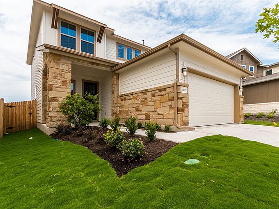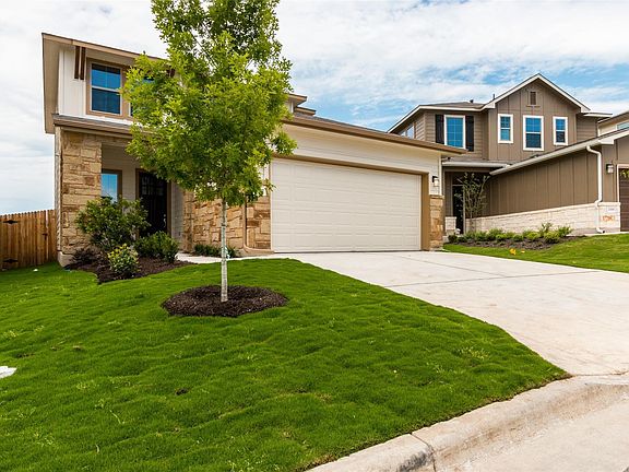 Perfectly located 3 bedroom/2.5 bathroom home with many desirable features. Huge living space with lots of natural light; open floor plan with high ceilings and recessed lighting; wood-looking tile floors in living area, kitchen, and bathrooms; covered patio; two car garage; and convenient location minutes from IH35 and TX 45. Refrigerator, Washer & Dryer included. Front yard maintained by HOA