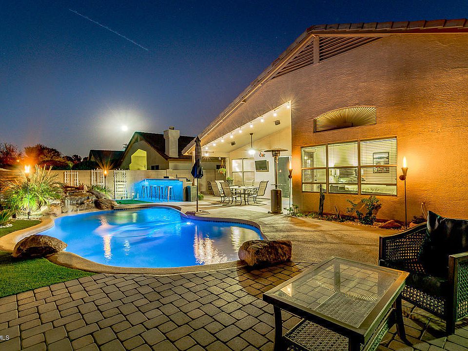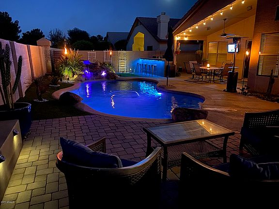 This home shows Pride of Ownership Inside/Out - Premium Lot with no neighbors behind home. Home features Formal Living/Dining Area plus Family Room off Kitchen. Plenty of Room in this 3 Bedroom plus Den. Lots of Tile and Pergo Flooring with 2 Carpeted Bedrooms. Soaring Ceilings, Decorator Nooks and plant shelves, accent walls give this home welcome character. Large kitchen with slab granite counters - Kitchen Island - Walk-in Pantry - Desirable N/S Exposure - Near New & Upgraded Energy Efficient A/C - Large Covered Patio that overlooks refreshing Waterfall pebble tech pool, Firepit, Citrus. Garage has Insulated door and lots of built-in Storage. RV Gate and parking. Excellent Gilbert location with excellent Gilbert Schools. Please note that Ceiling Fan in Family Room 2 be replaced.
