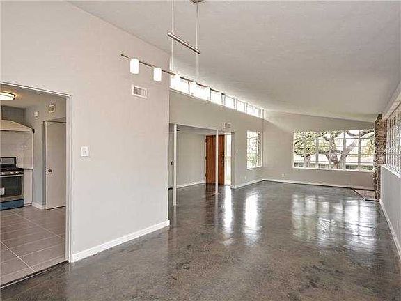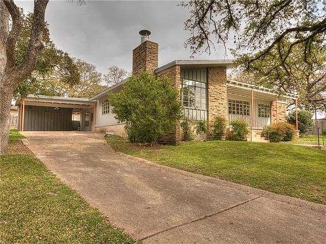 Cool, authentic mid-century modern house near Johnson Creek trail offers three bedrooms, two baths, living, dining and a flexible enclosed porch area. Mostly original but with upgrades to electrical and plumbing, kitchen updates and fridge/washer/dryer included. Polished concrete in living areas and carpet in bedrooms. Fabulous cul-de-sac street with high-end remodeled homes. Close to Zilker, popular eateries, and minutes to downtown.