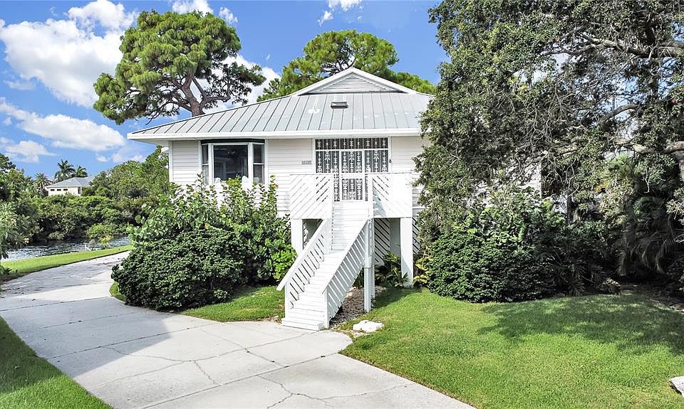 Key West style home with a metal roof, features a raised foundation, shady porches, and numerous windows to allow the air to move freely throughout the house. This architectural style responds both to the warm and sultry environment it originated in and to the very idea of living side by side with nature in such a beautiful setting. Located in the very desirable gated waterfront community of Harbour Watch, this two-story, open floor plan home offers 3 bedrooms, and 2.5 bathrooms of 2,255 sq ft of living space. The wrap-around deck is easily accessible with an elevator to a covered & screened-in deck w/ tranquil views of the pond off the living room. The large living room has double skylights and ceiling fans, and high ceilings with wood floors. On the other side just off the Kitchen is an open deck area and around the other side of the home is a light and bright sunroom with a full wall of windows. The master bedroom is large with a bay window and window seat, a large closet, and high ceilings. The master bath offers a jetted garden tub, skylight, and separate shower. The second bathroom has jack n jill access from the hall and a second bedroom with a walk-in shower. Bedroom 3 is very roomy with a bay window and window seat. Has access to the half bath off the foyer. On the first level is a two-car garage with lots of storage and a workshop area. This gated community includes 24/7 manned gate security, lighted tennis courts, a junior Olympic-sized pool and heated spa, a private clubhouse with an exercise room, a playground, a gulf front gazebo, and a fishing pier. This is Florida living at its best! This home is only 10 minutes to local beaches or a 5-minute walk to the most beautiful sunsets from the community pier.