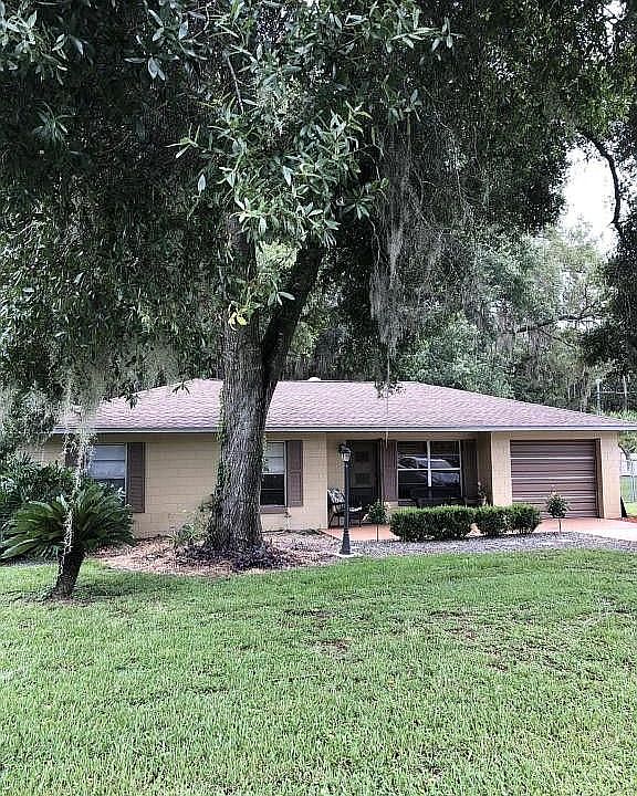 Highly desirable area near The Villages, Fruitland Park, and Leesburg. Large private backyard with above ground pool and beautiful oak trees, completely fenced with double gate. Large 24x24 workshop with electric outlets. Inside features tile floors, new planking and carpet in bedrooms, newly painted, Pictures of interior are older, does not show carpet and planking in bedrooms, stainless steel refrigerator and dishwasher, game room with pool table, screened enclosed patio, New roof in 2015 and New AC in 2014.