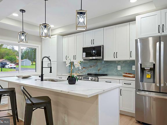 Welcome to 2102 Moorland Drive — a charming colonial set on a spacious .64-acre lot in the heart of Bel Air. This four-bedroom, three-bath home combines classic appeal with thoughtful updates and a layout designed for modern living. The main level features an open-concept design with stylish luxury vinyl plank flooring throughout. At the heart of the home, the chef-inspired kitchen offers crisp white shaker cabinets, sleek quartz countertops, a striking tile backsplash, an oversized island with seating, and brand-new stainless steel appliances. The kitchen flows seamlessly into the bright dining area, while the living room is flooded with natural light and opens directly to the deck, creating a perfect indoor-outdoor connection. A main-level bedroom adjacent to a full bathroom provides versatile options for guests, a home office, or multi-generational use. Upstairs, plush new carpeting leads to three spacious bedrooms. The owner’s suite boasts a beautifully renovated bathroom with a custom vanity and designer porcelain tile with accent details, delivering a refined, spa-like feel. Two additional bedrooms share a hall bath thoughtfully updated with modern tilework and stylish finishes. The finished basement provides versatile living space with tile flooring, ideal for a recreation area, home gym, or additional gathering space. Recent updates include a new roof, HVAC system, exterior doors, well pump, and RainSoft water filtration system, offering peace of mind and efficiency. Outdoors, the level .64-acre lot provides ample space for gardening, play, or relaxation, with open space behind the home for added privacy. A wide gravel driveway easily accommodates multiple vehicles. Situated in a quiet residential setting, this home is just minutes from downtown Bel Air’s vibrant Main Street, featuring shops, dining, cafés, and community events. Nearby, you’ll find Bel Air Town Center, Harford Mall, and local parks including Rockfield Park and the Ma & Pa Trail for outdoor recreation. Easy access to I-95 and Route 1 makes commuting to Baltimore, Aberdeen, and beyond simple and convenient. Families will also value proximity to top-rated Harford County schools.