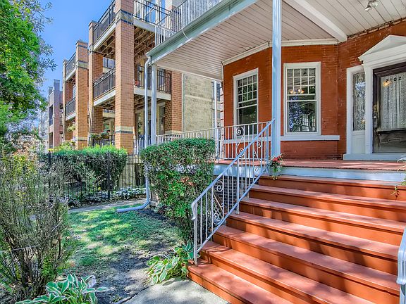 Listed in the National Register of Historic Places and constructed in the 1890's, timeless design and ornate detail grace this beautiful and rare brick Queen Anne 2-flat on perhaps the most appealing block of tree-lined Humboldt Boulevard. Part of the Logan Boulevard Historic District and situated on an oversized 32'x166' lot, this home has been in the same family since 1971 and is ready to have new life breathed into its elegant, inviting quarters. A huge front porch greets you upon entry into the gated front yard. Throughout both floors you'll savor original details from floor to coffered ceiling; oak trim, cove moldings, hardwood floors, imposing archways, ornate pocket doors, glass sconces that were once gas-fed, original carved wood mantels, stately backlit wood and glass built-in hutches complete with original hardware, various archaic morsels, and patterned mosaics that you'll get lost in. Three beds/one bath on the first floor and four beds/one bath on the second (plus a bathroom in the high-ceilinged basement) mean plenty of space for everyone, whether you refresh as an investment (duplex it down for a lavish owner's unit!) or convert to a magnificent single family home. Oversized wood-frame windows flood every room with bountiful light while accenting the original solid wood-panel doors and ornate switch covers. The first floor has seen a kitchen update with the addition of laundry hookups. Second floor kitchen is prepped for restoration; all of the original wooden cabinet faces are present and awaiting modernization. Atop the front porch is an equally-large east-facing deck overlooking Humboldt Boulevard that spans the width of the house, accessible through a magnificently arched doorway. Two enclosed back porches with newer windows look out upon a huge and sunny backyard ringed with mature peonies and hostas. The two car garage likely needs to be torn down, but can be replaced with an even larger structure and possibly even an ADU (check with your architect and zoning attorney). Property is boiler heated with a newer hot water heater per floor. Included with this home is a box of various antique knick knacks such as skeleton keys, plate covers, doorknobs, locksets, and other historic miscellanea. Perfectly located steps from Palmer Square Park and the vibrant Logan Square dining scene, you're also conveniently near easy commuter options (Blue line, 90/94, Fullerton and Armitage buses) as well as shopping, schools, and more. Property sold As-is. This property may qualify for historic tax incentives. Be sure to ask your agent for details...