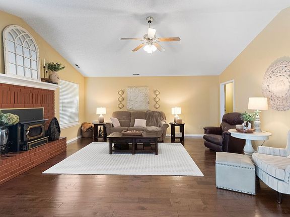 Nestled in a beautiful neighborhood near JB Hunt Park, this stunning three-bedroom, two-bathroom home offers exceptional privacy and space on an expansive 0.35-acre lot. The home features an attractive brick and vinyl exterior with a welcoming front porch and lovely landscaping that creates excellent curb appeal. Inside, you'll find beautiful engineered hardwood floors throughout the main living areas, with comfortable carpet in the bedrooms and abundant closet storage throughout. The living room boasts a cozy wood-burning fireplace, while the formal dining room flows seamlessly into the kitchen, which includes an eat-in breakfast nook and patio door access. The spacious primary bedroom offers direct backyard access for ultimate convenience. With a roof that's only three years old, you can move in with peace of mind. The fully fenced backyard features mature trees and is perfect for entertaining, making this Springdale home an ideal retreat combining rural tranquility with neighborhood convenience.