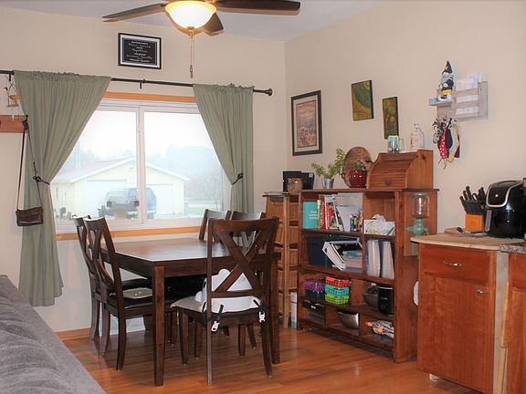 Sweet 2 bedroom with the work all done. Kitchen features nice newer cabinetry, large pantry, appliances included with a newer dishwasher. Open concept with a dinette. Bathroom has been redone and 2 nice size bedrooms complete the main floor. All the floors except the bath are beautiful oak wood. Feels very spacious with the large vinyl windows in all rooms. Floor plan has a nice lay out no wasted space here! Cute front porch and no sidewalks to shovel!!The adjoining lot to the east is part of the parcel and the lot to the west is probably purchasable if you need a bit more yard, one car attached garage with extra closet space for lots of storage. Full basement has a room with shower, sink, stool and laundry hook ups. Dry basement awaits a some final finishing touches to almost double your living space. New Ceiling fan water heater recently installed. Dog fencing, kids play set will not remain on property.