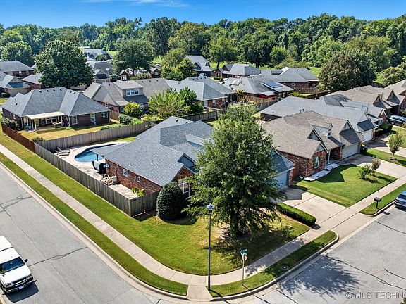 Welcome to this beautifully maintained corner-lot home located in the highly desirable Jenks School District, just two blocks from the golf course! This spacious 4-bedroom, 2-bath residence features a formal dining room, a cozy fireplace, and stunning teak hardwood floors throughout the main living areas. Fresh interior paint gives the home a bright, updated feel. The kitchen offers stainless steel appliances, island and ample storage with two large pantries—including a huge walk-in pantry—perfect for keeping everything organized and within reach. Step outside to your own private backyard retreat complete with a saltwater pool, hot tub, and lush, manicured landscaping—ideal for relaxing or entertaining. The home is located just around the corner from a neighborhood park and only minutes from Highway 75 for easy access to shopping, dining, and more.