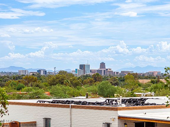 A Classic! Solar Panels to be paid off at closing! Great location close to I-10, downtown, U of A, restaurants, shopping, and more! Inside you'll love the bright living room, newly installed wood-style floors, vaulted ceilings and soothing paint. The eat-in galley kitchen has ample counters, high end GE Cafe appliances with induction stove, a breakfast bar and crisp white cabinets. Outside, relax in your serene backyard with screened in porch. Enjoy incredible city views from the charming front porch! Motion detection sensors and lights in front and back. Both bedrooms have a spacious closet. The bathroom includes a step-in handicap ready shower. Large laundry room. Desert landscaping, carport space with extended driveway for extra parking greets you upon arrival. Come and see it today!