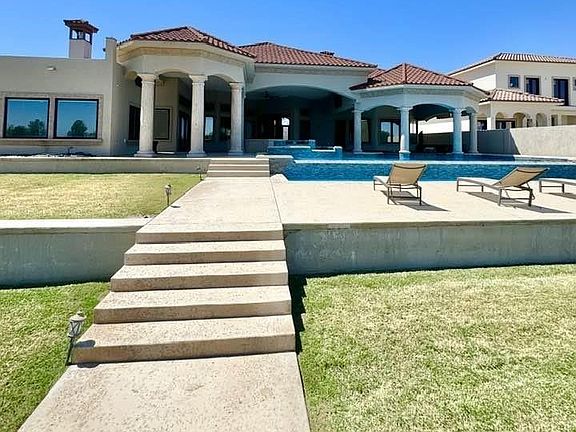 Modern lines with elegant designs, overlooking the Pecos River! Remote operated blackout window treatments, open to unbeatable views from nearly every room of this luxurious & open floor plan! Ceilings are truly a work of art, Grand custom wood doors and accents, cabinetry crafted in rich dark woods and stone counter surfaces! A Chef's kitchen, commercial grade fridge, custom cooktop, double oven, granite backsplash, "Butler's Pantry" with wine fridge & so much storage! Abundant room to entertain indoors with 4,800 square feet including 2 spacious living areas, both have gas starter fireplaces! Gorgeous formal dining room right off of the eat-in kitchen or take the party outside via sliding glass walls/ full sliding doors, to the stone surface covered patio. Take a dip in the inground pool or soak in the hot tub! Enjoy a meal from the outdoor kitchen while you take in the view of the burnt Orange New Mexico Sunset! There is a Casita by the pool for additional lodging and entertaining!