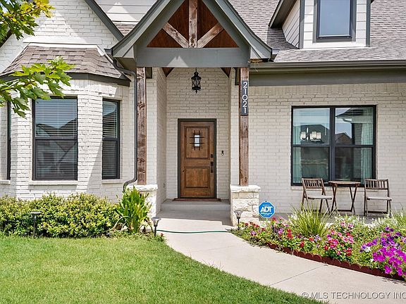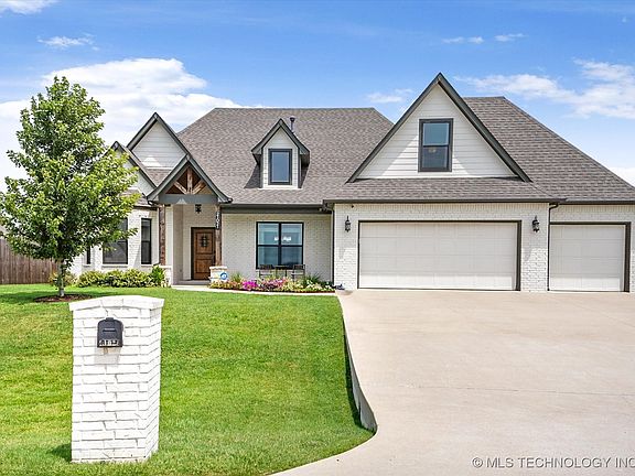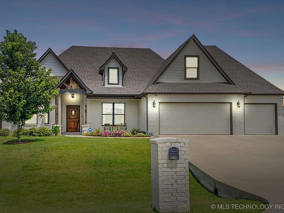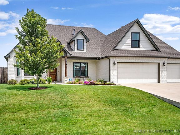 Set in a quiet neighborhood, this beautiful 2019-built one-owner home, offers the perfect blend of modern comfort and style. The home features a split floor plan with 4 bedrooms, 3 full bathrooms, formal dining, and game room. There are 3 bedrooms and 2 full baths downstairs, ideal for multi-generational living. Inside, you'll find exquisite hand-scraped hardwood floors downstairs throughout the entryway, formal dining, living room, kitchen, and both hallways, adding warmth and character to the open-concept layout. The living room boasts a vaulted, beamed ceiling and a stunning floor-to-ceiling white stone corner gas log fireplace. You'll love the island kitchen - SS appliances including a French-door refrigerator, and a pantry closet. A butler's pantry w/beverage fridge & wine rack is set conveniently between the formal dining and kitchen. The spacious and private primary suite features an en-suite bath w/free-standing tub, tile shower, double sinks, and water closet, and a walk-in closet connecting to the laundry room. Upstairs at the landing, a nice desk for 2 has built-in storage space for your PC or gaming accessories. Off the landing, the larger walk-out attic space has lots of storage space, plus there's another smaller walk-out attic for HVAC access. A 4th bedroom, large game room w/WIC, and 3rd full bath complete the upstairs. With a 3-car garage and a well-designed floor plan with lots of natural light, this home combines functionality with luxury. Tankless HW system and zoned HVAC. Set on a 1/2 acre m/l, the property provides both peace and convenience, with a serene pond view. The privacy-fenced backyard offers ample room for future pool and garden spot. 5 minutes to the Creek Turnpike, NSU BA Campus, and the new Sunset Amphitheater Venue under construction. Don't miss the chance to own this exceptional home in a prime location - schedule a tour today!