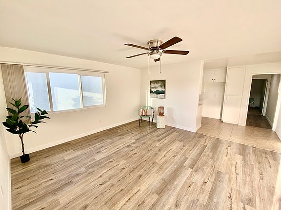 This 1 bd/1 ba is an upstairs unit in the back of a 4-plex in the highly sought after west Torrance neighborhood. It's been freshly painted with new "wood" lament flooring and carpet in the bedroom. Lots of natural light from the double-pane windows and storage, including floor-to-ceiling hallway cabinetry. The bedroom is a good size with a closet across the length of a wall. Ceiling fans are throughout. One garage parking spot with overhead storage. Laundry room onsite. No pets allowed. Shown by appointment only. Owner pays water, trash, and gardener. Tenant responsible for electricity. No gas.