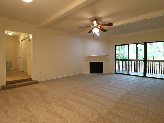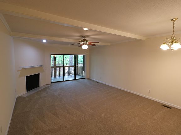 Lower level condo. 2BR/ 2 full baths with back porch facing wooded area. Open and spacious living room with dining space. Galley style kitchen accented with window to the living room. Primary BR features large closet, dual sinks and separate vanity area. Freshly painted throughout and new carpet. Central heat and air. All electric. No pets. Convenient to WFU and downtown. Tenant is responsible for water/ sewer, and power utilities. One year lease minimum.