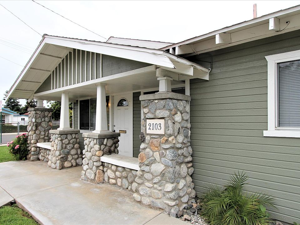 Craftsman Style single story, single family home. Covered front porch, 3 bedroom, 2 bathroom. Wood style flooring throughout. Central AC. Stove, no fridge. 1 car garage. Corner lot. Owner provides a gardener. Tenant pays all utilities. NO PETS. Located in the Old Town La Verne area. North of Arrow Hwy, east of "A" Street.