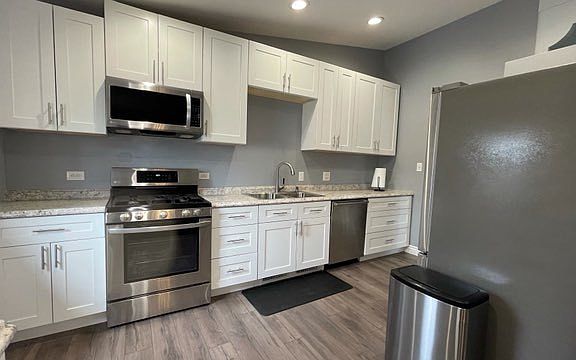 Her ye her ye her ye ***** A rare find, a Rolling Meadows Ranch with a full finished basement ***** Walk to grade and High School, Parks and bus. completely updated. Eat in Kitchen boasts 42" maple cabinets with soft close . Stainless steel appliances, sink and faucet,.Recessed lights. New Select surfaces premium wood laminate floor thru out entire home including basement. Ceiling fans. updated full bath with ceramic time new custom vanity. Finished basement with large rec room separate laundry room, work room with out exit to yard. large store room or 4th bedroom. All new doors and hardware. Updated full bath with glass shower doors. New sewer pipe to street with clean out. 2 Ring cameras one in front and one in back. 2 car detached garage fenced yard and perfect long concrete drive way great for cars, or toys.......