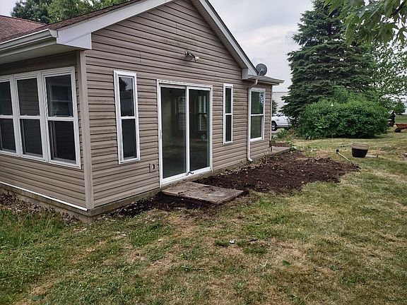 The property also features a walk-out lower level with a finished area and a wood-burning fireplace. Washer and dryer hookups are available on the main level laundry area.