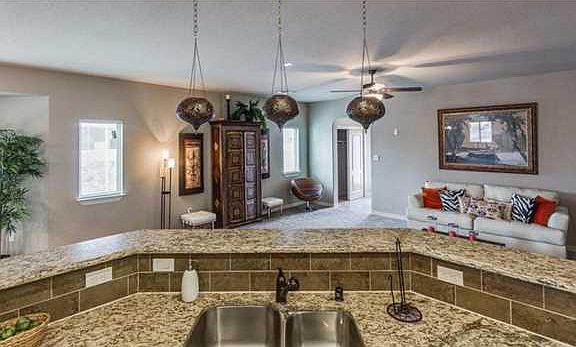 The New Hampshire: Single story with three bedrooms and two baths. Wonderful open floor plan with a beautiful kitchen. Kitchen with a large wrap around bar, granite countertops, stainless steel appliances, tile backsplash and rich cabinetry. Large family room, dining room and living room. Model home open 11-7 daily. Pictures are for demonstration purposes only. Look of final product varies based on buyers choices.