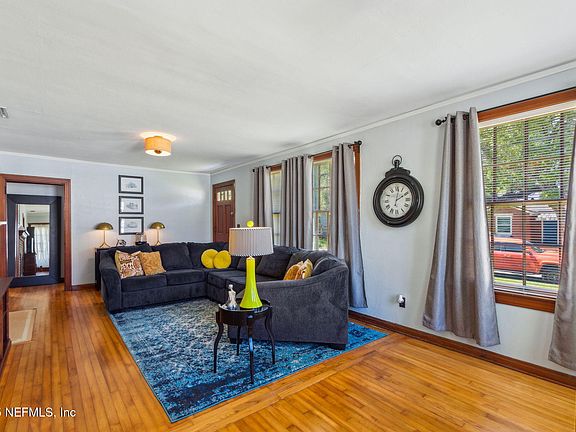 Located on a charming corner lot in the heart of St. Nicholas, this adorable & cozy bungalow combines timeless character with thoughtful updates. Just minutes from downtown & San Marco, this well- maintained gem has gleaming refinished hardwood floors, a warm woodburning fireplace, and an inviting living space that seamlessly blends historic charm with modern comfort. Tasteful updates enhance the home while preserving its original character. Some of the recent improvements include a freshly painted exterior, updated light fixtures, and a new wooden privacy fence overlooking the manicured backyard. The screened-in back porch is perfect for relaxing and entertaining. Major updates, as noted by city permits, include a roof and garage door replacement in 2020, as well as a new HVAC system in 2023. This home also includes a detached one-car garage, providing ample parking and storage. Washer & dryer included as well as a transferable Massey Termite Bond. Furniture in home is negotiable.