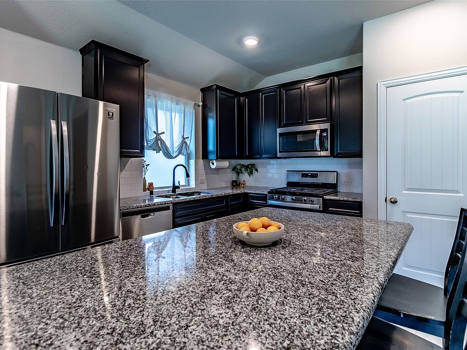 This beautiful brick and white Austin stone home offers the perfect blend of warmth, style, and everyday comfort. Step inside to a bright, open floorplan filled with natural light — where the living, dining, and kitchen areas flow seamlessly together, making family time and entertaining easy. The kitchen is the heart of the home, featuring a gas range, plenty of counter space, and bar seating for casual meals or homework time. Each bedroom offers soft, plush carpeting and a cozy retreat for rest after a long day. Enjoy peaceful mornings on the covered back patio or relax in the spacious backyard with room for playsets, pets, or backyard BBQs. It’s the kind of space where memories are made! Just a short walk away, you’ll find the community clubhouse, fitness center, sparkling pool, and the neighborhood elementary school — making those morning and afternoon walks with the kids extra special. From curb appeal to community connection, this home offers everything your family needs to feel right at home.