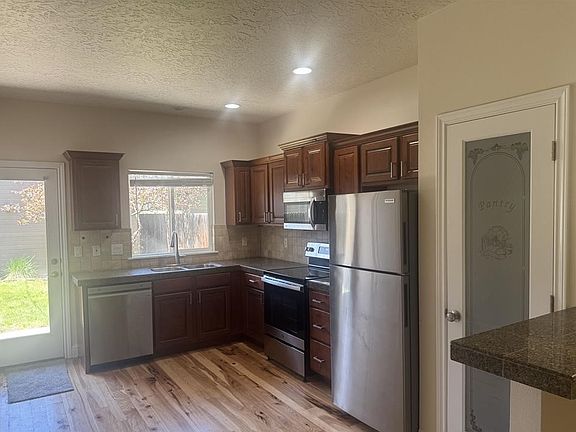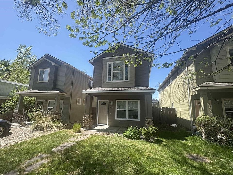 Prime North End location! Close to White Water Park and Veterans Memorial Park. Easy access to downtown, greenbelt and foothills. Brand new interior and exterior paint. New carpet. Open floor plan with beautifully refinished real hickory hardwood floors, tall ceilings, 3 sided gas fireplace. Upgraded cabinets, stainless steel appliances, including fridge. Master suite has walk in closet and balcony. Fully fenced with detached garage. Three total bedrooms and two and a half bathrooms. Home is vacant and ready for move in.