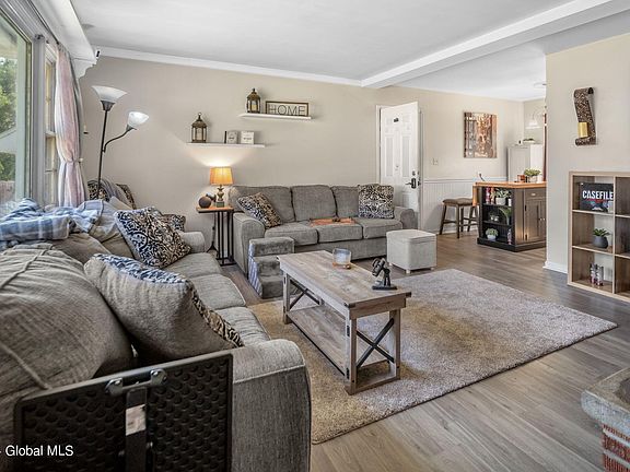 Spacious Cape in the Mohonasen school district with even more to offer! This 5-bedroom, 3-bath home now includes a fully finished basement, complete with a bedroom with egress window, family room, bathroom, and kitchenette. The main level features a modern kitchen with granite countertops and stainless steel appliances and a cozy wood fireplace in the living room. Garage converted to add'l living space can easily be reverted back with grade 4 porcelain tiles: capable of handling the weight of a vehicle. Spacious fenced (2021) backyard. New roof (2019) New Furnace (2020) New Water Heater and Sump pump (2021). A fantastic opportunity in a desirable location! Listing agent is related to seller.
