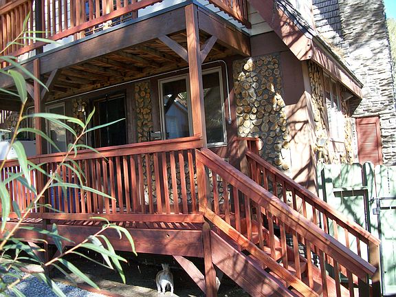 TURNKEY! Open Floor Plan, Craftsman style home located on coveted large corner lot with easy access to freeway. Includes a permitted 360 square foot area which can be used as a studio/office/library. Relax along the 1000 square feet of Redwood deck that surrounds the home or the 2nd level deck for added privacy and enjoy the serenity of a quiet mountain community. Or enjoy the Mountain High Ski Resort located only 3 miles away! Home has been upgraded with a New Septic Tank and Water Heater in 2012. Other features include: Large wood burning fireplace, Forced air heating, Water softener, Double pane windows, Ceiling fans, Large walk-in closet, Vaulted ceilings, Storage shed, Granite countertops and upgraded bathroom. This will not last! Call for your private viewing today!