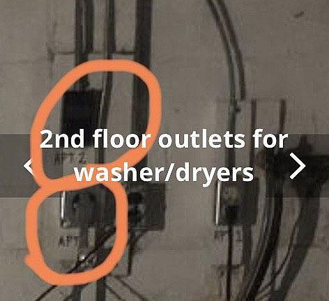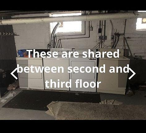 Parking garage. Shared laundry room in basement.