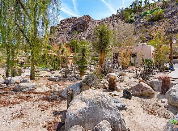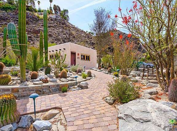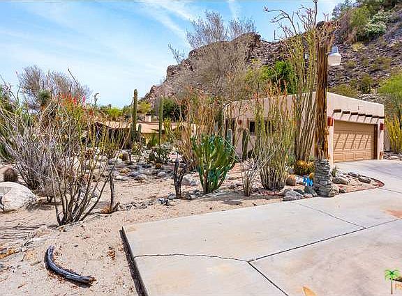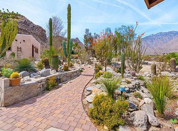 Perched in one of the most majestic settings on the East side of Araby Cove and looking due West is this emotional property. With just under two thirds of an acre and 360 degree mountain views with one of the most unique relationships to our Desert. The house has three bedrooms and two baths and has southwest decorator influences with custom art niches and great fireplace that anchors the living and dining areas. Probably built originally back in the late 1920''s or early 1930''s, this house has had only two owners for a reason - the setting. Great covered porch area on the West side of the house as well as a separate two car garage and again, simply magic that you must see and experience to believe.