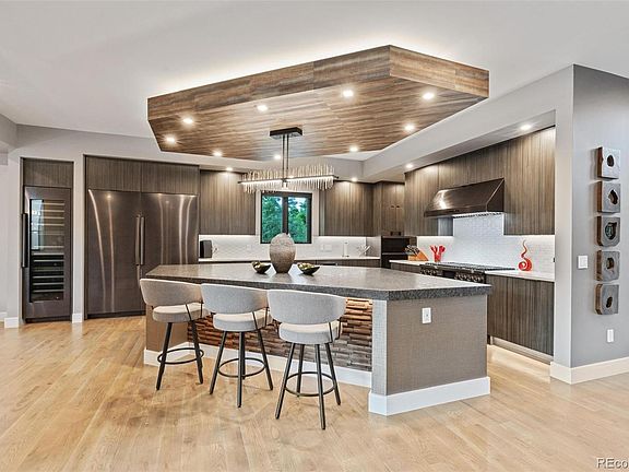 Welcome to your dream home in Observatory Park! This exquisite property offers a perfect blend of modern elegance and timeless charm, making it a truly unique and desirable residence. The exterior showcases a perfect balance of contemporary design and classic architectural elements, making this property a standout in the neighborhood. Step inside to discover a thoughtfully designed interior that maximizes space and natural light. From the foyer, you are steps away from the main floor primary suite that can alternatively become a convenient office space. The open floor plan joins the kitchen, dining room, and living room spaces while bi-fold doors expand your entertaining realm to the outdoors. The well-appointed kitchen is a chef's delight, equipped with top-of-the-line stainless steel appliances including a full 48” range + double ovens, 100-bottle wine column, 66” refrigerator/freezer columns, walk-in butlers pantry, and a generous island for meal preparation and casual dining. On the second floor, you’ll find four bedrooms. Retreat to the primary suite, which boasts a serene ambiance with a gas fireplace, a walk-in closet, and a spa-like ensuite bathroom with heated floors for the ultimate relaxation. Continuing your journey to the third floor reveals another entertaining area, exercise room/flex space with mountain views and a rooftop patio ready for a hot tub. The full basement will continue to delight with exposed beams, polished concrete floors, an oversized bar area with a pair of glassware dishwashers, a fantastic wine room, flex space, a grand guest suite, and additional oversized finished storage space. The attached garage keeps you out of the elements and offers space for three large vehicles and all your extra toys or workshop if needed. Pre-wired for EV charger.