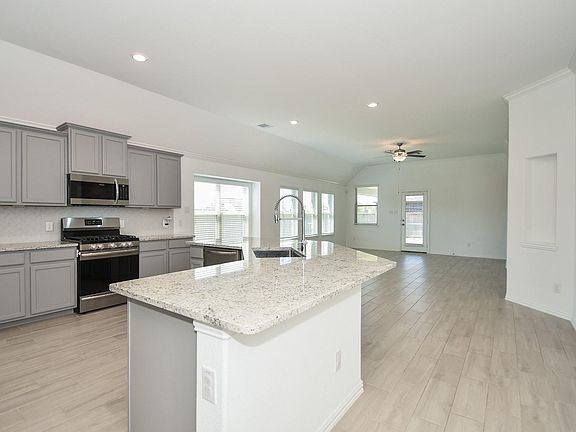 One story home located in the highly sought out neighborhood of Harvest Green. 3 bedrooms, 2 bath with an extra bonus room that could be used as a game room, home office or play area. Open floor plan with wood like tile floors in the kitchen and living areas. Refrigerator, washer and dryer included.