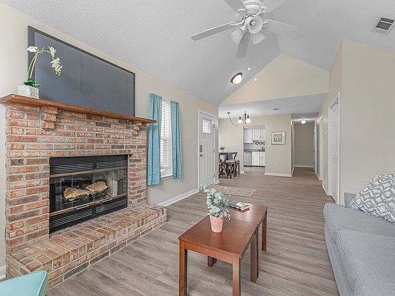 New Flooring Installed! Welcome to this charming home located in a peaceful cul-de-sac, just a stone's throw away from Eglin Air Force Base. As you approach the front door take note of the brick column on the porch where you can relax. Upon entering, you'll be greeted by a tile foyer and cathedral ceiling, creating an open and airy atmosphere. The large half-circled window provides plenty of natural light, flooding the space and creating a warm ambiance. The focal point of the living room is the brick fireplace, perfect for cozy evenings. The kitchen features granite countertops, stainless-steel appliances, and a separate dining area. Two spacious bedrooms and an inside laundry room is an added benefit. A single car garage and privacy fenced yard offer comfort and convenience. The home is ideal for first-time buyers or investors. Contact us for a private tour.